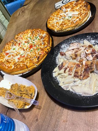 پیتزا هاش عالی بود 👀🤍 و قیمت عالی من در این صورت که تو شهرک غرب هستم فقط تعریف شنیدم و یکبارم امتحان نکردم ولی امشب ک خوردم عاشقش شدم 🤎✨
