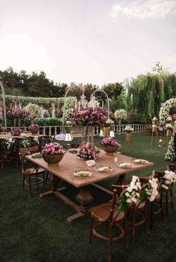 نمایش موقعیت منباغ تالار والا یکی کامل ترین مجموعه عروسی در تهران میباشد. این تالار با فاصلهی بسیار کمی از مرکزیت تهران، سمت اتوبان فتح واقع شده است. باغ تالار والا علاوه بر تشریفات مجالس عروسی، در زمینه برگزاری مجالس برای همایشها و افتتاحیهها نیز نامی ماندگار از خود بهجای گذاشته است. این تالار علاوه بر عمارت بزرگ برای برگزاری مراسم، باغ بسیار بزرگ و جذابی برای برگزاری مراسم در فضای باز دارد. در فصل های گرم علاوه بر فضای داخل، میهمانان شما میتوانند از فضای باز با دکوراسیون مجلل نیز استفاده کنند. آب نمای لاکچری، نورپردازی حرفهای، اتاق کودک، پارکینگ اختصاصی و ده ها امکانات خاص و فوق العاده که تماما مختص باغ تالار والا میباشد. این باغ تالار در زمینی به مساحت 22000 متر مربع در سال 97 افتتاح شد. این باغ تالار دارای فضای باغی و یک عمارت شیک با گلآرایی سقف میباشد و از معدود باغ تالارهایی است که دارای پارکینگ مجهز، پارکبان و دوربین مداربسته است. ورودی مهمانان مشخص میباشد. دارای فضای خاص عقد، برکه 1000 متری، سالن 2000 متری. آشپزخانه داخل فضای باغ میباشد و غذاها دارای کیفیت بالایی هستند. این باغ تالار دارای نورپردازی کلاسیک، آبنما، نمایی ساده و اروپایی. باغ تالار والا برای تهویه خوب هوا در ارتفاع بالایی قرار دارد. سالن آن در مجموع دارای 3 ستون میباشد. جایگاه عروس و داماد در ارتفای بالاتر از مهمانان قرار دارد. نورپردازی داخل سالن در هر تایمی از مراسم به هر رنگی قابل تغییر میباشد… فضای باز باغ پراکنده نمیباشد و صندلی مهمانان جدا از هم چیده نشده و همین مسأله باعث ایجاد صمیمیت و آشنایی بیشتر دو خانواده عروس و داماد میشود. چایخانه سنتی خارج از فضای باغ میباشد. به این دلیل که دیزاین باغ طبق نظر و سلیقه عروس و داماد باشد و به این منظور فضایی خالی در اختیار آنها قرار میگیرد تا دیزاین دلخواه خود را برای مراسم آنجا اجرا کنند. دارای تنوعی از ظروف و صندلی میباشد. دارای رختکن و سرویس بهداشتیهایی مدرن و به روز میباشد. باغ تالار والا فعالیت خود تقریبا از 10 سال پیش را با سابقهای درخشان در خدمات عروسی، تشریفات مراسم نامزدی، مهمانیها و همایش¬ها آغاز نمود. تالار والا والا می کوشد با ارائه خدماتی بی نظیر و با کیفیت به مشتریان خود در جایگاه بهترین تشریفات عروسی قرارگیرد. این تالار با کنار هم گذاشتن بهترین فضا و بهترین تیم تشریفاتی، کاری کرده است تا استرس شما به حداقل برسد. عروس و داماد های عزیز میتوانند به همراه خانواده هایشان از چند روز قبل از مراسم، در ویلای مجلل که متعلق به باغ والا است مستقر شوند و در کمال آرامش برای مراسم خود آماده شوند. ویلای کاملا مجهز به همراه تیم خدماتی و آشپزی و همچنین ماساژور حرفهای به شما کمک میکند تا با حداقل استرس در مراسم خود حضور داشته باشید. یکی از مهمترین مسائل در مراسم عروسی، آرامش میهمانانی است که کودکان خردسال دارند و اکثر وقت خود را به نگهداری از آنها باید سپری کنند، باغ والا با در نظر گرفتن این مشکل و در راستای آسایش و راحتی میهمانان، تیم حرفهای از مربیان مهدکودک در اختیار دارد که هم کودکان سرگرم و شاد باشند و هم مادر پدران به راحتی از مراسم لذت ببرند. و در آخر، هرچیزی که برای آسایش شما در روز عروسی نیاز باشد را میتوانید در باغ والا به بهترین شکل پیدا کنید. باغ تالار والا مسلما متفاوت ترین و کامل ترین مجموعه حال حاضر در تهران و همچنین در ایران است.