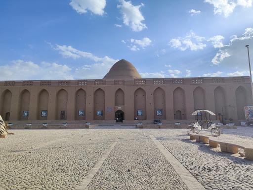 یخچال خشتی میبد یکی از بزرگترین یخچال های قدیمی است که تا بحال دیده بودم. برای بازدید از آن باید هزینه ای بپردازید. این یخچال درست روبروی چاپارخانه و کاروانسرای قدیمی میبد قرار گرفته است. این یخچال قدیمی هم مثل بقیه یخچال های قدیمی برای ذخیره یخ برای تابستان استفاده میشده است. دیواره های قطور و گلی این یخچال ان را در مقابل گرمای تابستان کاملا عایق می کرده است. روبروی یخچال دو تا استخر کم عمق قرار دارد که به گفته راهنما در زمستان آبی در حد عمیق چند سانیمتر را وارد استخر می کردند تا یخ ببندد و بعد از یخ بستن، مجدد همان مقدار آب را وارد استخر می کردند تا روی یخ قبلی برود و مجددا یخ ببندد و به همین ترتیب یک استخر یخ با ضخامت 50 سانتی متر درست میده که آنرا تکه تکه می کردند و با کمک مردم به داخل یخچال منتقل می کردند و مجددا این پروسه تکرار می شده. بخاطر اینکه در قدیم هوا خنکتر از الان بوده این یخ داخل یخچال تا انتهای تابستان جوابگوی نیاز مردم بوده است. در زمان مصرف ، از مردمی که برای درست کردن و حمل یخ کمک کرده بودند هزینه ای برای یخ نمی گرفتند ولی از بقیه مردم و کاروان ها پول دریافت می شده. برای ورود به این مکان باید هزینه بپردازید.