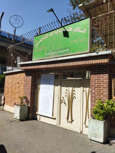 نمایش موقعیت منحسینیه رستم آباد بالا (محل عبادت) در محله دیباجی - فرمانیه تهران و خیابان فرمانیه، دیباجی شمالی ، نرسیده به خروجی صدر واقع شده است. این مکان یکی از دو محل عبادت در محله دیباجی - فرمانیه تهران میباشد و از نظر موقعیت جغرافیایی در نزدیکی مسجد الرضا (ع) دیباجی، باشگاه اسکواش دیباجی، کارواش زمرد، بوفه کانتینر و زولبیا شهروز قرار گرفته است.