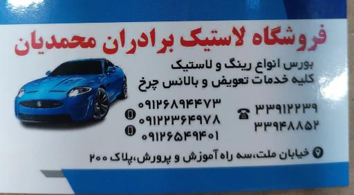 نمایش موقعیت منلاستیک فروشی برادران محمدیان (لاستیکفروشی و آپاراتی) در محله بهارستان تهران و خیابان ملت واقع شده است. این یکی از سه لاستیک فروشی و پنچرگیری در محله بهارستان تهران میباشد و از نظر موقعیت جغرافیایی در نزدیکی مراکز مهمی مانند خانه موزه استاد ابوالحسن صبا و پاساژ کاشانی و همچنین عمارت مسعودیه، یدک برلیانس، یدک سنتر، ایستگاه مترو ملت و شرکت تعاونی مصرف کارکنان بانک ملی ایران قرار گرفته است. با توجه به نزدیکی این به ایستگاه مترو ملت، برای دسترسی راحتتر و کمک به داشتن هوایی پاکتر، میتوانید از وسایل حمل و نقل عمومی برای مراجعه به آن استفاده کنید.