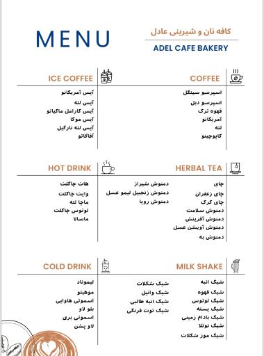 کافه نان و شیرینی عادل (کافیشاپ) در شهرقدس و بلوار امامزاده واقع شده است. و از نظر موقعیت جغرافیایی در نزدیکی مراکز مهمی مانند شهر بازی دیاکو، حمام تاریخی سرجوب و رویال و همچنین باشگاه بانوان آی شن، شرکت نگارین صنعت آسیا، پیش دبستانی رویش اندیشه، حلیم عبدی و فرمانداری شهرقدس قرار گرفته است.