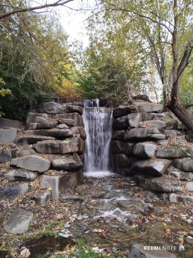 آبشار موزه در داخل محوطه زیبای موزه گیاه شناسی در یک روز زمستانی ،واقعا باغ زیبا و دیدنی