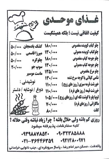 کترینگ موحدی (کترینگ و تهیه غذا) در استان تهران، شهرستان پاکدشت، بخش شریف آباد و خیابان زین الدین واقع شده است. و از نظر موقعیت جغرافیایی در نزدیکی مرکز خرید سرو نقره ای و همچنین مطب مامایی فهیمه طایفه خانی، پیرایش چارلی، باشگاه رزم آوران جاوید ، خشکشویی یاس و مدرسه طاهره قرار گرفته است.
