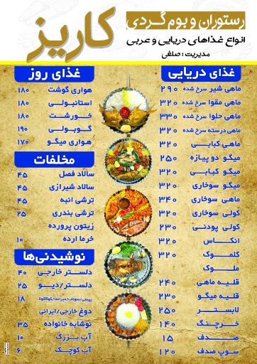شما میتوانید اطلاعات و آدرس دقیق این رستوران را در ادامه ببینید. به یاد داشته باشید اگر به رستوران سنتی لابستر (کاریز) رفتید، حتماً نظر خودتان را در بخش نظرات با ما و دیگران به اشتراک بگذارید.