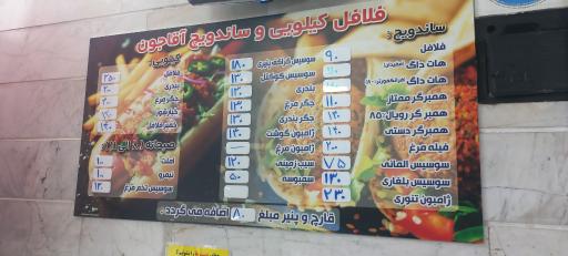 فلافل کیلویی و ساندویچ آقاجون (فست فود) در محله حسینی فردوس تهران و خیابان چهارده معصوم واقع شده است. این مکان یکی از هفده فست فود در محله حسینی فردوس تهران میباشد و از نظر موقعیت جغرافیایی در نزدیکی مجتمع تجاری ولیعصر و همچنین بوستان یاس، مسجد حضرت علی اصغر (ع)، لواشی محله، فست فود امید و ایستگاه اتوبوس حسینی قرار گرفته است. همچنین با توجه به نظراتی که کاربران در اپلیکیشن نشان به این مکان دادهاند میتوان گفت این مکان یکی از فست فودهای خوب این منطقه میباشد.