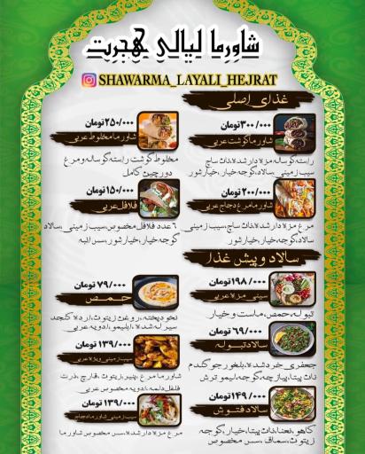 فست فود شاورما لیالی هجرت یکی از فست فودهای شهر ری است که در محله دولت آباد قرار گرفته است. برای اینکه اطلاعات بیشتری از فست فود شاورما لیالی هجرت به دست بیاورید، میتوانید با شماره تلفن آن (09379697905) تماس بگیرید. آدرس اینستاگرام این فستفود، https://www.instagram.com/shawarma_layali_hejrat?igsh=cTh0NXNhZzB4aGUw است که برای دیدن منو و عکسهای بیشتر میتوانید به آن مراجعه کنید.