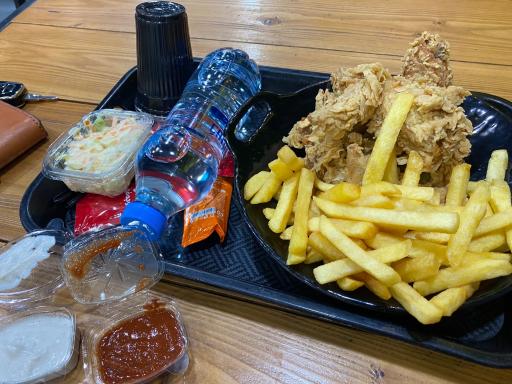طعم مرغ سوخاری رو دوس نداشتم خیلی طعم لیمو عمانی میداد که به نظرم نباید استفاده بشه چون کاملا سلیقه ایه خیلیا ممکنه خوششون نیاد نسبتا گوشت زیادیم نداشت بیشتر سوخاری بود