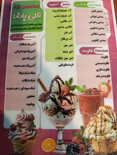 بستنی فروشی علی پاشا (بستنیفروشی و آبمیوهفروشی) در خوزستان، شهرستان اهواز و خیابان ایثار واقع شده است. و از نظر موقعیت جغرافیایی در نزدیکی پمپ بنزین غریباوی، کافه دنج، بوستان کیانشهر، دبستان بانو عصمت جواد پور و سوپر مارکت ناصر قرار گرفته است.