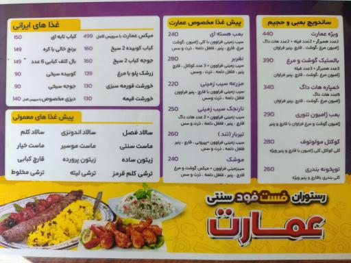 در ادامه اطلاعات و آدرس دقیق این رستوران را میبینید. در صورتی که به رستوران عمارت رفتید، فراموش نکنید که حتماً نظر خودتان را در بخش نظرات با ما در میان بگذارید.