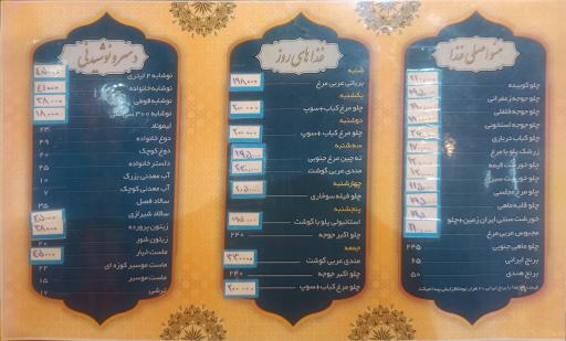 کیفیت عالی حجم غذا بسیار زیاد به صورتی که یه چلو برای دو نفر کافی است .برخورد پرسنل بسیار عالی .خوشرو و خوش بر خورد .