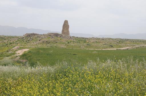 از خود شهر جز زمینی پر از سنگ چیزی باقی نمانده، اما ستون اصلی تنها یادگار این مکان باستانی است