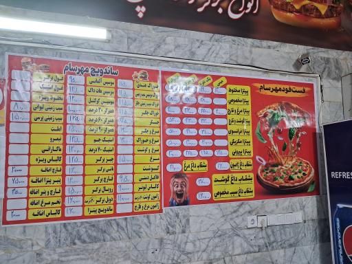 یکی از فست فودهای شهر مشهد، فست فود شبانه روزی مهرسام است که در محله رده قرار گرفته است. شماره تلفن فست فود شبانه روزی مهرسام 09157007824 است که شما میتوانید از طریق آن هر اطلاعاتی در مورد این مکان نیاز دارید، به دست آورید. شما میتوانید عکس و فیلمهایی از منو و فضای فست فود شبانه روزی مهرسام را در صفحه اینستاگرام آن به آدرس اغذیه مهرسام ببینید.