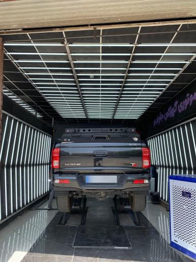 نمایش موقعیت منمجهز به جک بالابر خودرو دستگاه اسکنر فرابنفش تشخیص رنگ تنها مرکز بازید فنی و دیاگ در نيشابور توسط مکانیک، خدمات بدنه سرامیک خشگیری کاور