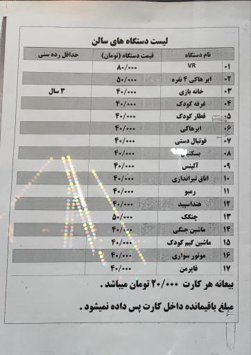 شهربازی در حد قابل قبول ،از دو بخش سالن و فضای باز تشكیل شده بود.قیمت بلیط های سالن۵۰ و داخل محوطه ۶۰تومنی بود