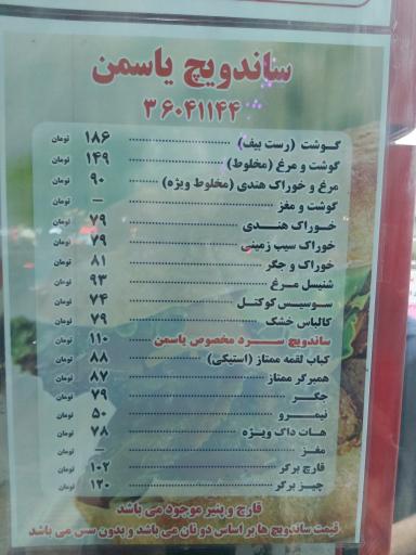 فست فود اغذیه یاسمن یکی از فست فودهای شهر مشهد است که در محله آزادشهر قرار گرفته است. شماره تلفن فست فود اغذیه یاسمن 05136041144 است که هر اطلاعاتی در مورد این مکان نیاز داشته باشید در اختیار شما میگذارد.