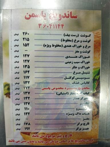 اغذیه یاسمن (فست فود) در محله آزادشهر مشهد و بلوار وکیل آباد، بلوار امامت، امامت 54 واقع شده است. این مکان یکی از شصت و یک فست فود در محله آزادشهر مشهد میباشد و از نظر موقعیت جغرافیایی در نزدیکی کافه راه، پیتزا پینو، آش ماش گناباد، رستوران و کترینگ ریخته گرزاده و ایستگاه اتوبوس آموزگار 20 قرار گرفته است. همچنین با توجه به نظراتی که کاربران در اپلیکیشن نشان به این مکان دادهاند میتوان گفت این مکان یکی از فست فودهای خوب این منطقه میباشد.