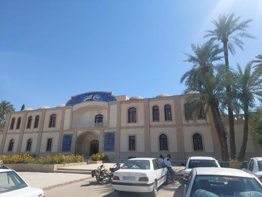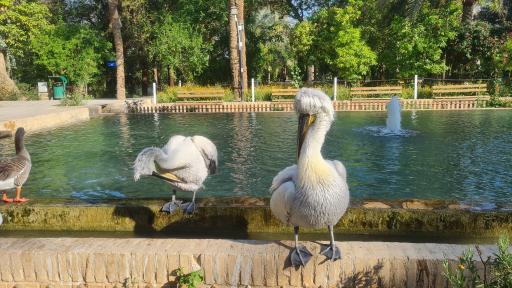 نمایش موقعیت منباغی بسیار زیبا و دیدنی با درختان انار و کاج و نارنج و نخل های زیبای خرما که در داخل باغ گلشن گلهای بسیار زیبا و چندین پلیکان نیز دارد این باغ همیشه آب در آن جاری است ارزش رفتن رو داره
