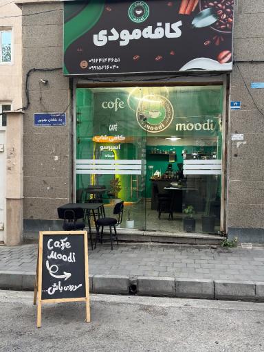 کافه مودی (کافیشاپ) در محله شهرک پاسداران تهران و خیابان بدخشان جنوبی واقع شده است. این کافیشاپ یکی از هفت کافیشاپ در محله شهرک پاسداران تهران میباشد و از نظر موقعیت جغرافیایی در نزدیکی مراکز مهمی مانند بخش روانپزشکی و پاساژ الماس تهرانسر و همچنین کارواش آرن، کافه تراس، شرکت آتش نشانی پارسین، فروشگاه مانیتوران و قنادی تاج محل قرار گرفته است. همچنین با توجه به نظراتی که کاربران در اپلیکیشن نشان به این مکان دادهاند میتوان گفت این کافیشاپ یکی از کافیشاپهای خوب این منطقه میباشد.