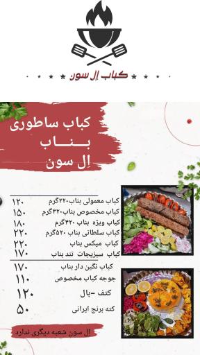 کباب بناب ال سون (کباب و حلیمفروشی) در کهریزک و بلوار باهنر واقع شده است. و از نظر موقعیت جغرافیایی در نزدیکی عینک فرهاد، خانه سوخاری کیلویی کریسپی هوم، کافه فست فود رویال لند، دفتر خدمات اقامت و اشتغال اتباع خارجی و باشگاه تختی قرار گرفته است.
