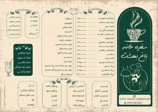 سفره خانه باغ بهشت در دورود و خیابان کنارگذر شهید بهشتی واقع شده است. و از نظر موقعیت جغرافیایی در نزدیکی هتل ایران زمین، رستوران برگ سبز، کافه باغ دورود سیتی، تعمیرگاه مکانیکی محمد و تالار ایران زمین قرار گرفته است.