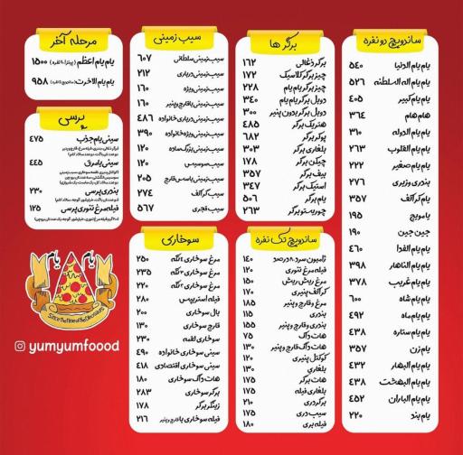 منو با قیمتهای جدید - آبان 1404