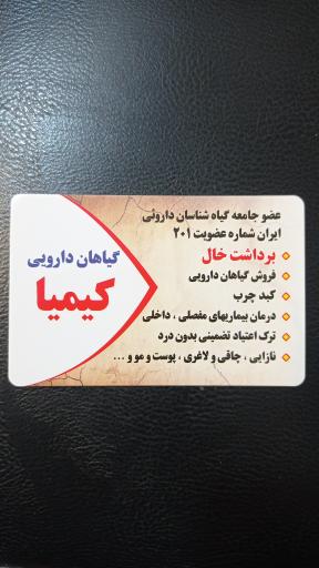 نمایش موقعیت منعطاری کیمیا در محله جی تهران و خیابان ده متری امام زاده عبدالله واقع شده است. این عطاری یکی از هشت عطاری و دارو گیاهی در محله جی تهران میباشد و از نظر موقعیت جغرافیایی در نزدیکی مجتمع تجاری گلها و همچنین امامزادگان عبدالله و زید بن عباس (ع)، شیرینی مهتاب نو، علی فلافلی، مسجد امیرالمومنین و رستوران کیوکباب قرار گرفته است.