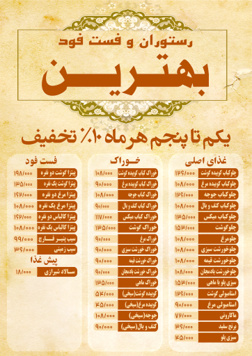از یکم تا پنجم《هر ماه》تخفیف های《10% 》رستوران و فست فود《بهترین》