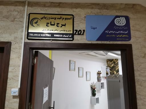 کلینیک پوست زیبایی و لیزر تاج (کلینیک زیبایی) در کرمان و خیابان ۲۴ آذر واقع شده است. و از نظر موقعیت جغرافیایی در نزدیکی مراکز مهمی مانند سرزمین بازی کودک و مجتمع تجاری میلاد و همچنین گیم نت میخکوب، مجتمع کیش ایر ایران، بانک کتاب آزادی، اتو گالری استیلایی و قنادی پاپا قرار گرفته است.