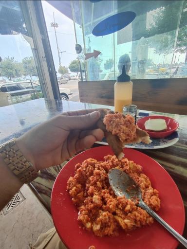 نمایش موقعیت منمن همیشه توی شمال میرم یه همچین چایخانه هایی که واقعا نوستالژیک و قدیمی هستن ، برخلاف کافه هایی که دکوراسیون قدیمی میزنن که فضای کافشون رو قدیمی نشون بدن.. عالی و دوست داشتنی بود منتها من املت سفارش دادم تصورم این بود با گوجه درست میکنن ولی با رب گوجه درست میکنن