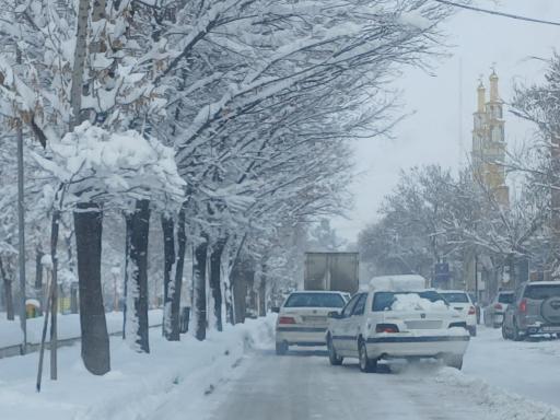 نمایش موقعیت منمناره های مسجددریک روز برفی وسطح خیابان طالقانی منتهی به مسجد