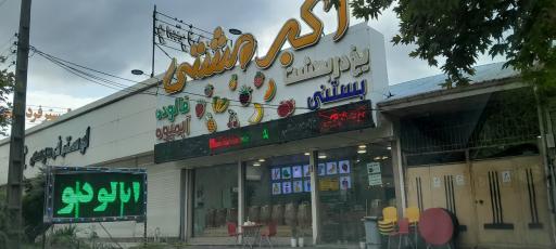 اکبر مشتی (بستنیفروشی و آبمیوهفروشی) در محله کوی یخ رشت و بلوار ولیعصر واقع شده است. و از نظر موقعیت جغرافیایی در نزدیکی مراکز مهمی مانند شهر شادی و بیمارستان آریا و همچنین نمایندگی ایران خودرو کد 1960، باشگاه کارتینگ رشت، لوازم یدکی و کولر خودرو خمامی، مرکز معاینه فنی 3404 رشت(برادران پورستگار) و پرشین نانو سرامیک قرار گرفته است.