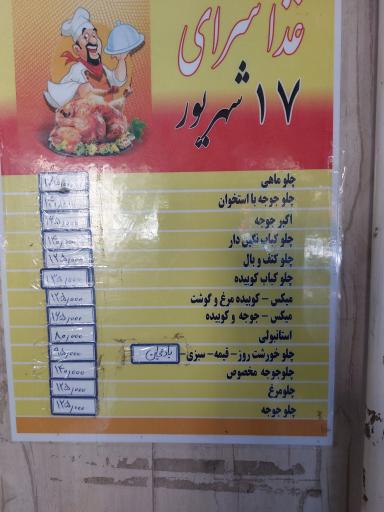 ساعت کاری، اطلاعات و آدرس دقیق این رستوران در ادامه قابل مشاهده است. فراموش نکنید اگر به رستوران 17 شهریور رفتید، حتماً نظر خودتان را بهصورت کامنت در بخش نظرات برای ما و دیگر کاربران ِ نشان قرار دهید.