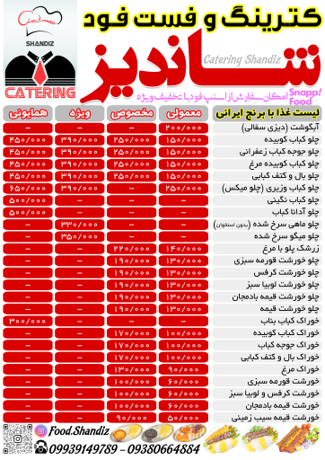 رستوران و کترینگ تهیه غذاهای ایرانی و فست فود پیتزا و ساندویچ و سوخاری