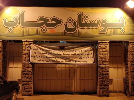 بوستان حجاب (پارک) در محله زمرد مشهد و بلوار هدایت غربی، بین هدایت 43 و بلوار موسوی قوچانی واقع شده است. این پارک یکی از چهار بوستان در محله زمرد مشهد میباشد و از نظر موقعیت جغرافیایی در نزدیکی شب بازار هدایت و همچنین ایستگاه اتوبوس پارک حجاب، کترینگ بابا قربان، بستنی سنتی رادکان، ساندویچ دایی جون و مسجد و حسینیه 14 معصوم (ع) قرار گرفته است. همچنین با توجه به نظراتی که کاربران در اپلیکیشن نشان به این مکان دادهاند میتوان گفت این پارک یکی از پارکهای خوب این منطقه میباشد.