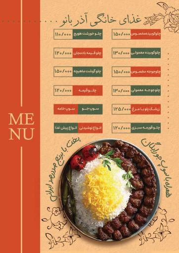 نمایش موقعیت منغذای خانگی آذر بانو (کترینگ و تهیه غذا) در محله بهار تبریز و خیابان خرم دل واقع شده است. این مکان یکی از پنج کترینگ و آشپزخانه در محله بهار تبریز میباشد و از نظر موقعیت جغرافیایی در نزدیکی بیمارستان شبانه روزی اسد آبادی و همچنین قنادی بنی هاشم، هنرستان شبانه روزی کشاورزی تبریز، دبیرستان معارف صدرا، سوپر کمند و باطری سازی علی قرار گرفته است.