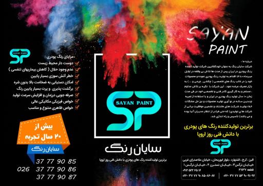 کارخانه سایان رنگ تولید کننده انواع رنگ پودری الکترواستاتیک در البرز، شهرستان اشتهارد و خیابان نرگس ۱ واقع شده است. و از نظر موقعیت جغرافیایی در نزدیکی کارخانه سبز اندیشان زرین کود و عظیم کارتن قرار گرفته است.