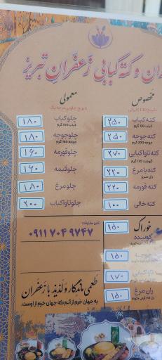 اطلاعات و آدرس دقیق این رستوران در ادامه قابل مشاهده است. به یاد داشته باشید در صورتی که به رستوران و کته کبابی زعفران تبریز رفتید، حتماً نظر خودتان را در بخش نظرات با ما و دیگر کاربران به اشتراک بگذارید.