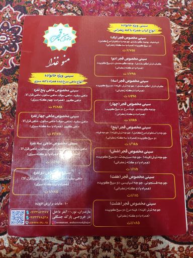 من به اتفاق دوستانم رفتم رستوران قجر سینی قجر دو سفارش دادیم خیلی خیلی عالی بود اگر به منطقه نور تشریف اوردید حتما به رستوران محمد قجر برید و از فضا زیبا و رمانتیک فیض ببرید.