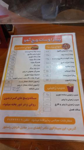 پیتزا و فست فود آهو مشهد سناباد 21 محله سناباد فضای بسیار عالی در کنار بوستان ابن سینا از محیط و امکانات پارک ابن سینا هم میشه استفاده کرد