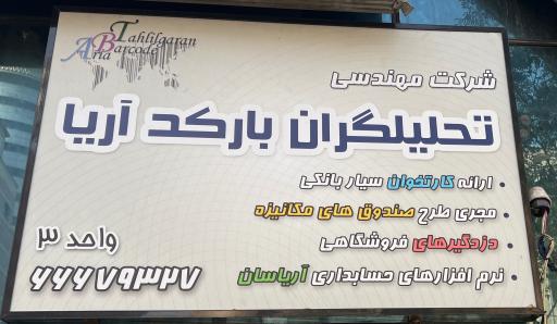 شرکت سهامی خاص تحلیلگران رمزینه آریا با نام تجاری ، تحلیلگران بارکد آریا ، از سال ١٣٨٨ ثبت و از سال ١٣٩٣ در این مکان مستقر شده است ، مهمترین زمینه های کاری این شرکت ، فروش و خدمات پس از فروش انواع نرم افزارهای فروش تخصصی حسابداری شرکتی و فروشگاهی با برند آریاسان ، صندوقهای فروش و انواع بارکد اسکنر ، فیش و لیبل پرینتر و مواد مصرفی مرتبط ، کارتخوانهای بانکی و تجهیزات ضد سرقت فروشگاهی با برند سیگما می باشد .همچنین این شرکت دارای نمایندگی معتبر از شرکت توسن تکنو و هامون بوده و طرف قرارداد با PSP های پرداخت نوین ، پاسارگاد ، ایرانکیش و فناواکارت نیز می باشد.