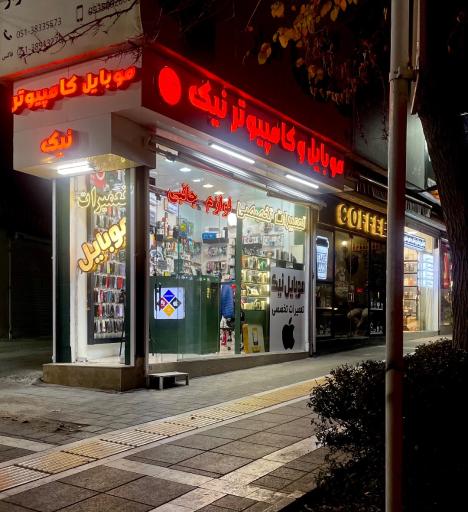موبایل نیک (فروشگاه و خدمات موبایل) در محله آب و برق مشهد و مشهد، بلوار صیاد شیرازی، بین صیاد شیرازی 32 و 34 واقع شده است. این مکان یکی از شانزده فروشگاه و خدمات موبایل در محله آب و برق مشهد میباشد و از نظر موقعیت جغرافیایی در نزدیکی اغذیه مهاجر، ایستگاه اتوبوس میدان شهید صیاد شیرازی، درمانگاه شبانه روزی فکوری، کافی شاپ ویتا و قنادی شهرما قرار گرفته است. همچنین با توجه به نظراتی که کاربران در اپلیکیشن نشان به این مکان دادهاند میتوان گفت این مکان یکی از فروشگاههای موبایل و ارائهدهنده خدمات تلفن همراه خوب این منطقه میباشد.