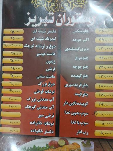 ساعت کاری، اطلاعات و آدرس دقیق این رستوران در ادامه قابل مشاهده است. به یاد داشته باشید در صورتی که به رستوران تبریز رفتید، حتماً نظر خودتان را در بخش نظرات با ما و دیگر کاربران به اشتراک بگذارید.