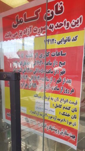 نان بسیار خوبی پخت می کنند، با آرد کامل که حاوی سبوس و جوانه گندم میباشد، توصیه می کنم از این نان استفاده کنید، بوی بسیار مطبوعی دارد و آدم را به روستاها و زمان های قدیم می برد،نان کامل از مبتلا شدن انسان به امراض مختلف مانند یبوست، مشکلات دستگاه گوارشی جلوگیری می کند.