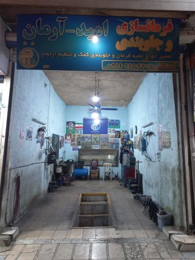 جلوبندی سازی امید و آرمان (تعویض روغنی) در محله علی آباد بروجرد و خیابان هجرت ۵ واقع شده است. و از نظر موقعیت جغرافیایی در نزدیکی سوپر مارکت گودرزی و همچنین فست فود فلافینو، نان فانتزی سجاد ، فروشگاه فرش کمالی، بانک صادرات و آرایشی کاکتوس قرار گرفته است.