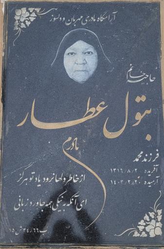مزار مرحومه بتول عطار (بنای یادبود) در خراسان رضوی، شهرستان مشهد، بخش احمدآباد و جاده فریمان واقع شده است. و از نظر موقعیت جغرافیایی در نزدیکی مزار مجید رضا رهنورد، بلوک ۶۶، بلوک 66 بهشت رضا ، زمین بازی کودکان و مسجد قرار گرفته است.
