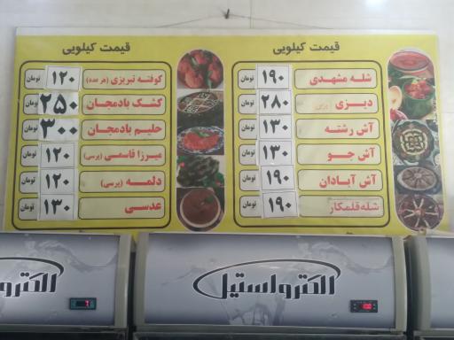 سلام،من یک مرتبه بصورتی تلفنی ازشون سفارش گرفتم...اصلن خوب نبود توی شله پر از ته گرفتگی ک از دیگ جدا کرده بودن ،بود و مشخص بود غذا مونده بود بوی ترش شدگی هم میداد،مشخص بود ک این غذا چند بار گرم شده!!!!!!