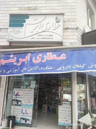 عطاری ابریشم در محله بازار روز ساری و بلوار امیر مازندرانی، یاس واقع شده است. این عطاری یکی از هشت عطاری و دارو گیاهی در محله بازار روز ساری میباشد و از نظر موقعیت جغرافیایی در نزدیکی مراکز مهمی مانند بیمارستان امام خمینی و پاساژ چهل ستون و همچنین بازار روز، یک فنجان کتاب، نمایندگی تشک رویال پیرزاده، بازار ابن شهر آشوب ساروی و انگشتر کده قرار گرفته است.