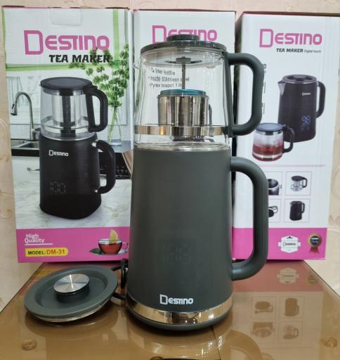 چای ساز روهمی لمسی دستینو ۱۵۰۰ وات مدل: DM031 کتری دو جداره استیل با ظرفیت۱.۸ لیتر صفحه کنترل لمسی روی بدنه قوری پیرکس با ظرفیت ۱ لیتر تفاله گیر تمام استیل سیستم خاموش خودکار دو رنگ مشکی و طوسی گارانتی ۲۴ ماهه