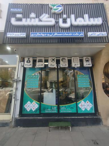 آژانس مسافرتی و جهانگردی سلمان گشت در محله فلسطین مشهد و بلوار فلسطین واقع شده است. این آژانس یکی از دوازده آژانس مسافرتی در محله فلسطین مشهد میباشد و از نظر موقعیت جغرافیایی در نزدیکی خانه کودک تابناک و همچنین رستوران سنتی جیران، ایستگاه اتوبوس فلسطین 15، آموزشگاه فنی حرفه ای ایده پاژ ، فروشگاه شهرما و کافه غار گوریلا قرار گرفته است. با توجه به نزدیکی این آژانس به ایستگاه مترو فلسطین، برای دسترسی راحتتر و کمک به داشتن هوایی پاکتر، میتوانید از وسایل حمل و نقل عمومی برای مراجعه به آن استفاده کنید.
